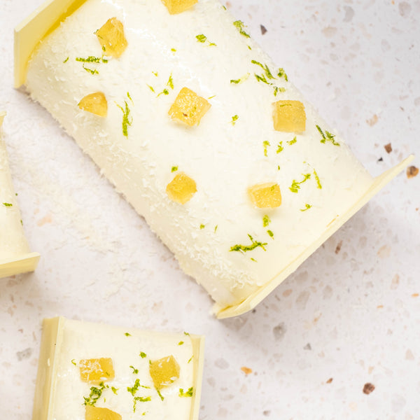 Une alliance savoureuse de vanille, mangues, gingembre et citron vert. Une bûche exotique pour un dessert riche et délicat, qui réchauffe les fêtes de fin d'année.