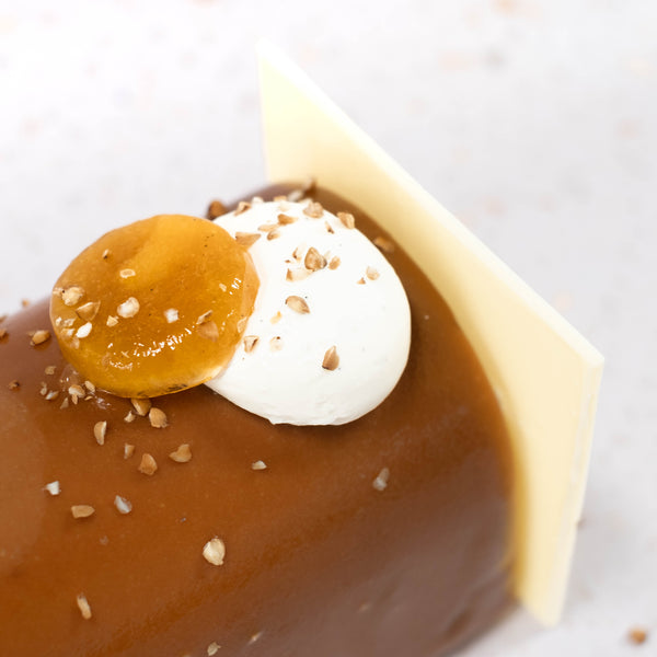 Biscuit Moelleux Sarrasin, Sablé Sarrasin et Pommes tatin, Mousse caramel, Glaçage Caramel, Sans farine de blé
