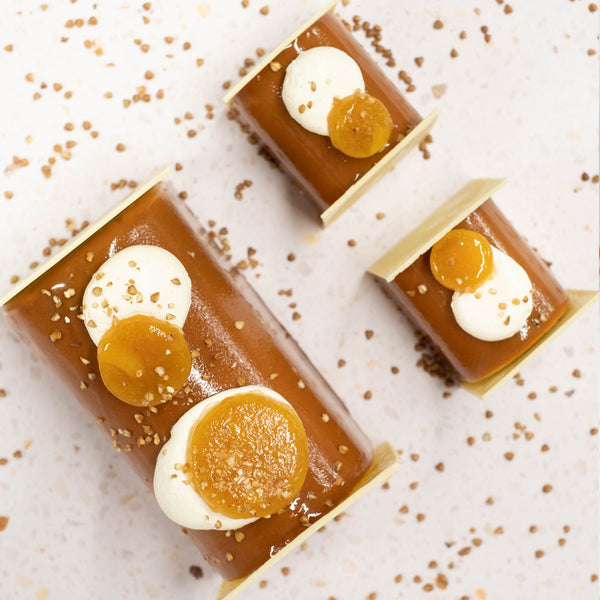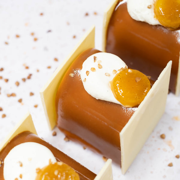 Une bûche originale avec son biscuit moelleux au sarrasin, des pommes tatin et une mousse caramel.